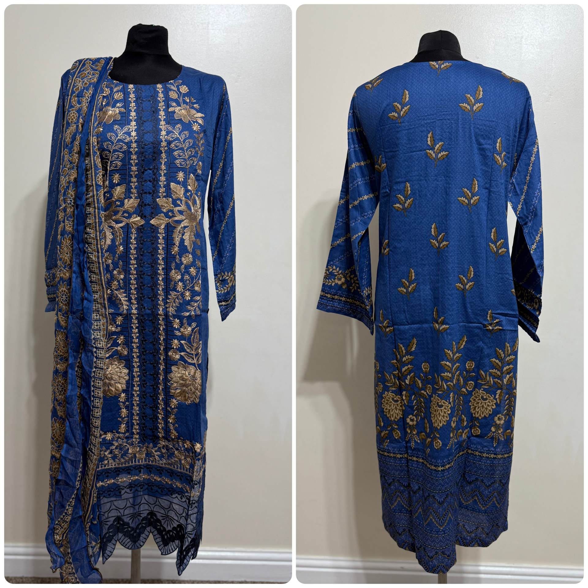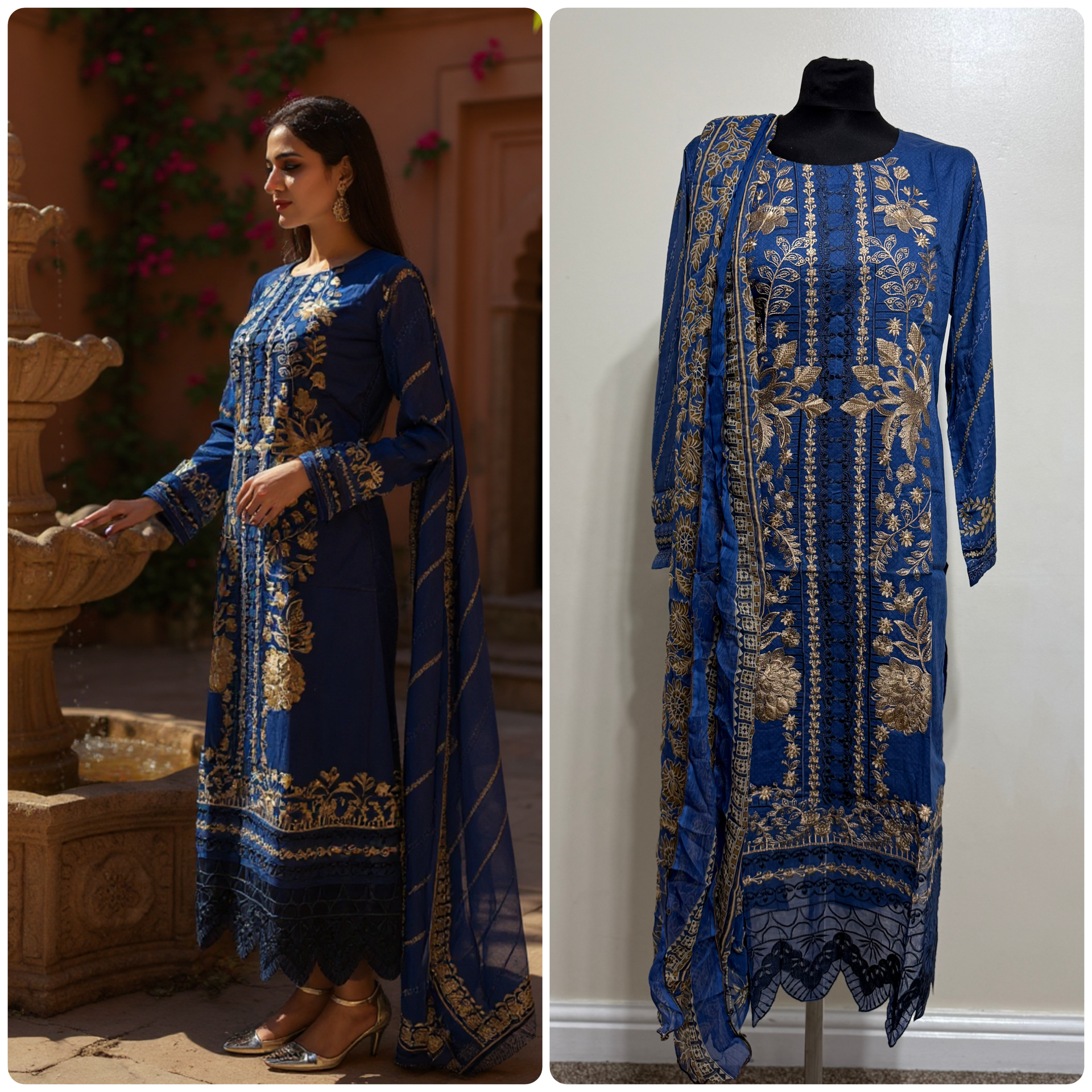 Designer Inspired by Maria B - 3 Piece Outfit Salwar Kameez Pakistan Fashion (Blue)