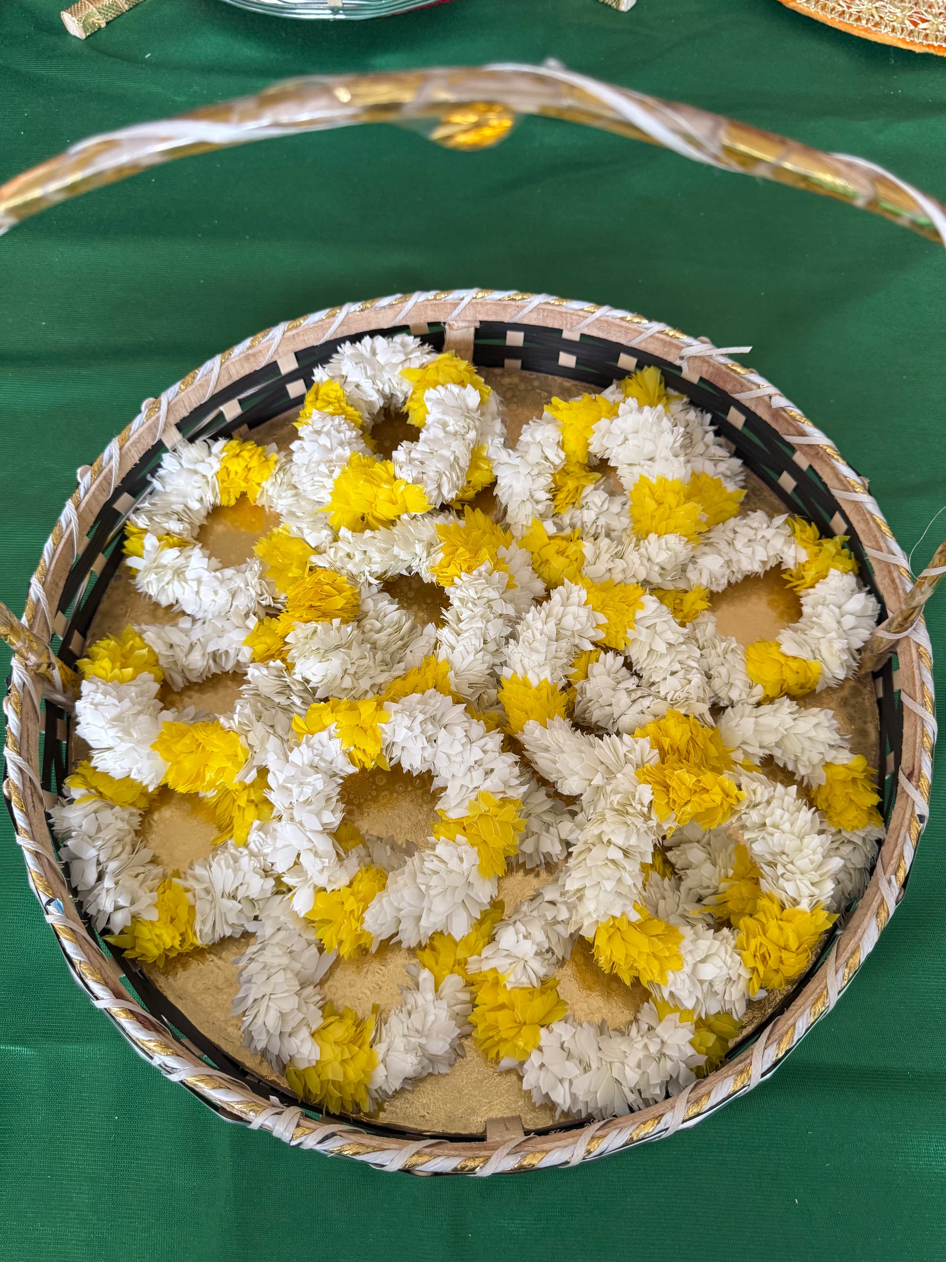- Adorned with white and yellow flowers, the gajra will add a touch of charm and grace to your look, leaving everyone in awe.
