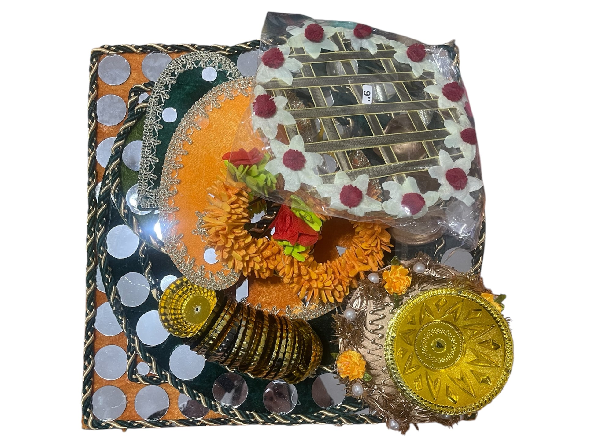 - Each bundle includes a variety of beautifully decorated thaal and plates, along with other essential items like foam floral wrist gajre and a gorgeous mehndi deco jaal.